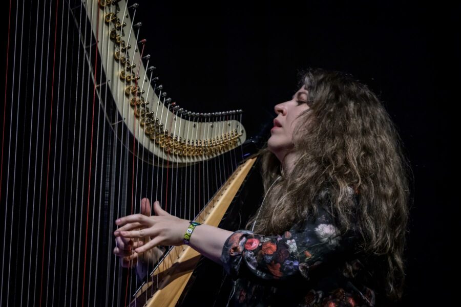 De Murray zaal is te klein voor de dromerige, meditatieve melodieën van Laura Misch, die een paar maanden terug nog in de grote zaal stond tijdens Transition. Ook nu speelt ze met een harpiste, Marisya Osu, aangevuld door gitarist Tómās Kāpar. Haar minimal en ambient music vult ze aan met warme, weemoedige vocalen, gesampelde soundscapes en loops. Ondanks dat de songs vrij sober en subtiel van opzet zijn, klinkt het trio verrassend vol en zit de kracht in de gelaagd- en compactheid. (AO)