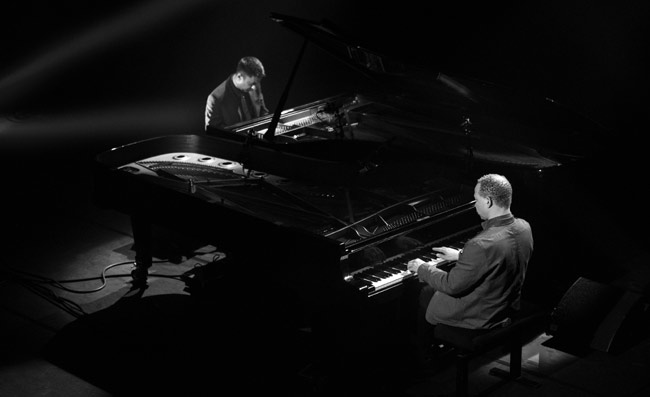Live werd alles nog eens extra uitvergroot. Beiden zaten tegenover elkaar aan de linkerzijde van hun respectievelijke piano. Niet echt verwonderlijk dat ze voor de meest donkere notenzijde van hun instrument kozen. In het midden van de set wisselden ze van plaats maar de ingesteldheid bleef dezelfde.